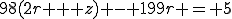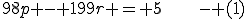 ഇതിനു് ഇത്രയേ അര്‍ത്ഥമുള്ളൂ-98p-യെ 199 കൊണ്ടു ഹരിച്ചാല്‍ ശിഷ്ടം 5 കിട്ടണം. ഇങ്ങനെയുള്ള p കണ്ടുപിടിക്കുക. (p കിട്ടിയാല്‍ r കണ്ടുപിടിക്കാന്‍ ബുദ്ധിമുട്ടില്ലല്ലോ.)